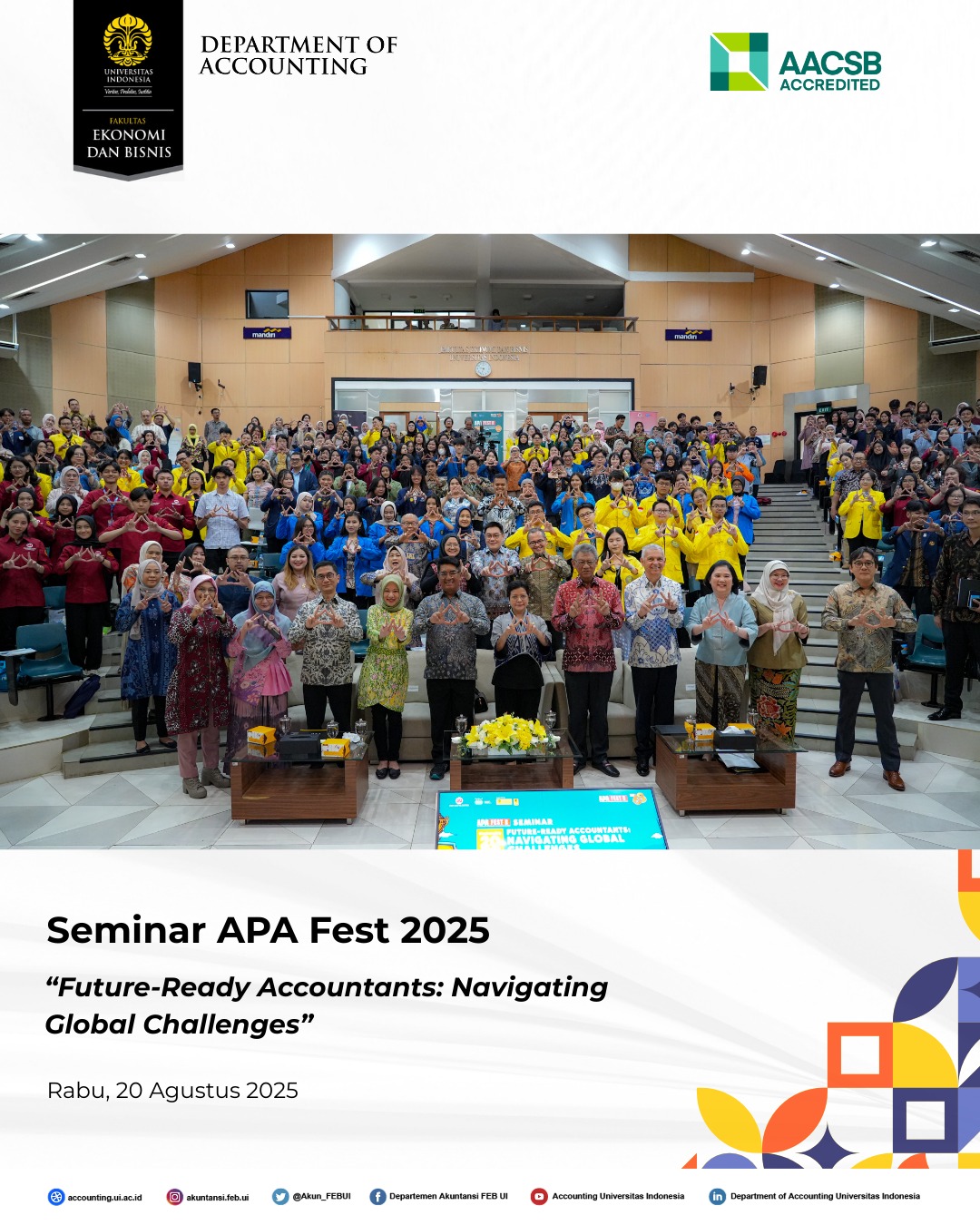 [SEMINAR INTERNASIONAL APA FEST 2025]Depok, Rabu, 20 Agustus 2025 – Ikatan Akuntan Indonesia berkolaborasi dengan Fakultas Ekonomi dan Bisnis Universitas Indonesia (@feb_ui) telah sukses menyelenggarakan Seminar International Aspiring Professional Accountants Festival (APAFest) 2025.Mengusung tema “Future-Ready Accountants: Navigating Global Challenges”, acara ini dihadiri lebih dari 400 mahasiswa, dosen, dan praktisi akuntansi.Seminar ini dibuka secara resmi oleh...Read More